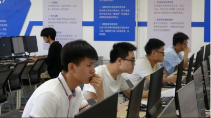 在各位工作人员的带领下,参赛选手有序进校。为保证比赛的顺利进行,我校人工智能与大数据学院选派多名技术教师在赛前对考试环境设备进行布置、调试与测试,做好赛场技术环境保障工作,确保比赛顺利进行。