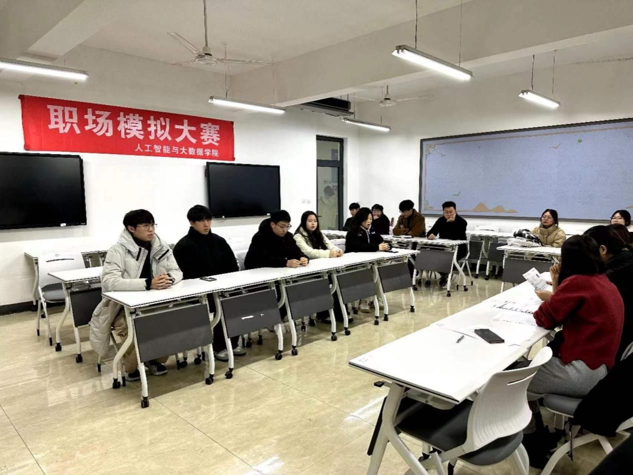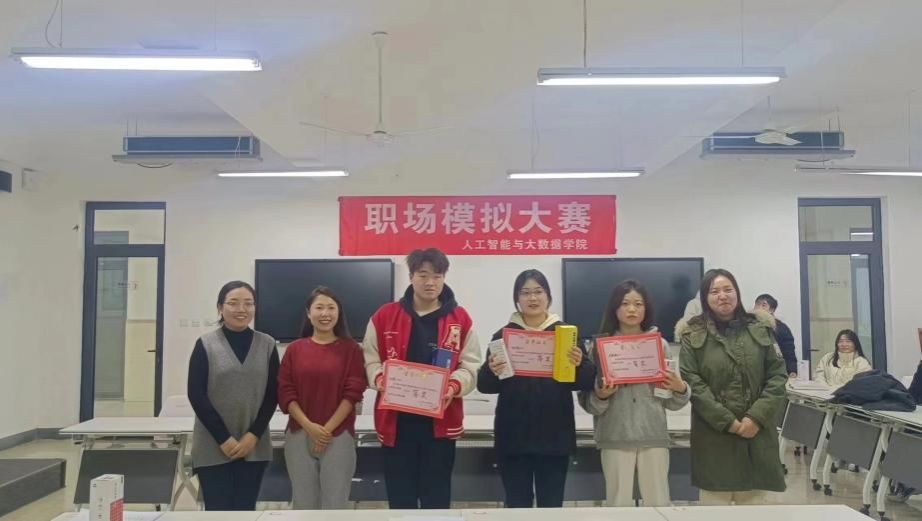 为帮助和提升同学们的职场综合实战能力、临场应变能力和演讲能力,加强我院学生职业生涯教育和就业指导,使同学们明确目标后把求职活动付诸实践,提供一个展示自我的机会。人工智能与大数据学院于12月18日在次教209举办职场模拟大赛。人工智能与大数据学院招生就业办主任潘亚静、团总支书记王珊及辅导员刘晓玲出席比赛并与学生进行了深入指导、交流。