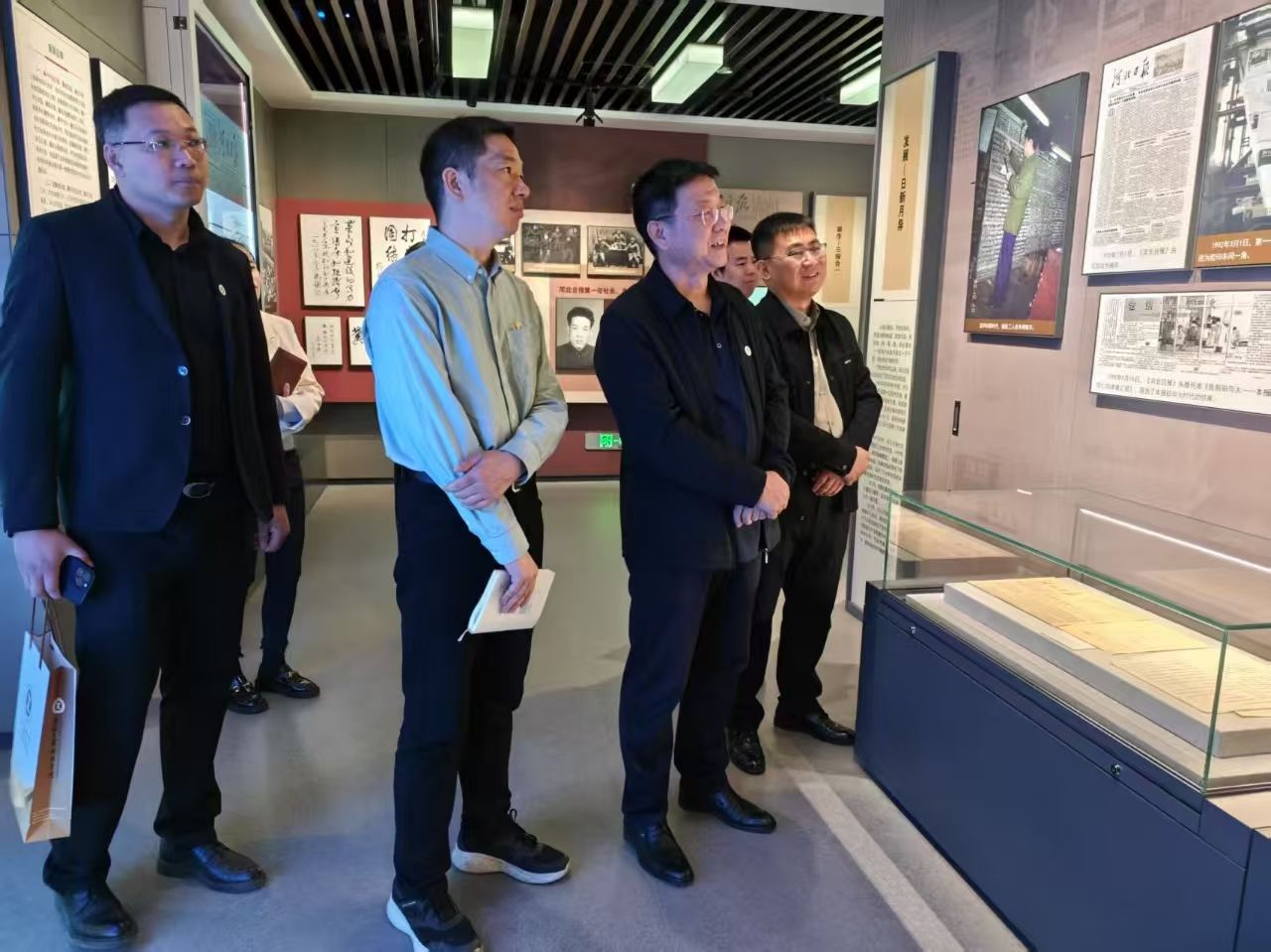 在河北日报信息数据服务有限公司总经理曹瑞宁引领下,校方一行首先参观河北日报社报史馆,了解其发展历程、重大事件及在新闻传播领域的贡献。随后,众人前往纵览传媒舆情中心,通过曹总对文化墙与业务的介绍,深入了解舆情监测、分析等工作流程及价值。