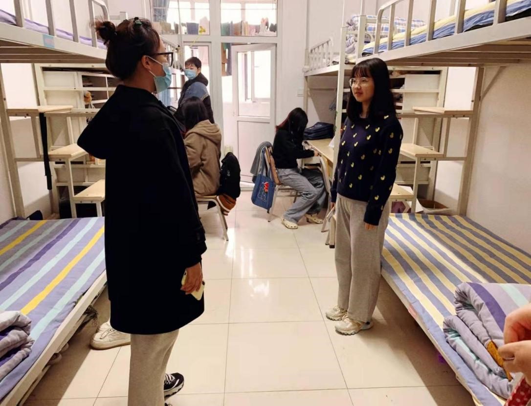 首先,辅导员对学生宿合的安全隐患进行排查,增强学生安全防范意识,保障整洁、安全、文明的学习生活环境。然后,深入走访学生宿舍进行亲切慰问。辅导员在宿舍与学生交流的过程中强调,在当前疫情情况下同学们要做好自身防护,并就学校近期展开的防疫政策做出解释,希望同学们积极配合,主动遵守学校的规章制度,保障人身安全。辅导员们亲自进行指导,学生们积极配合,融洽交流,气氛温馨。走访过程中,同学们反应在校期间所遇到的困惑和问题,辅导员们做了详细记录和讲解,努力帮助学生解决困难,积极开展针对性的心理疏导,消除焦虑情绪,了解学生所想所需,切实关注到每一位学生,为每一位学生送上温暖与关怀。