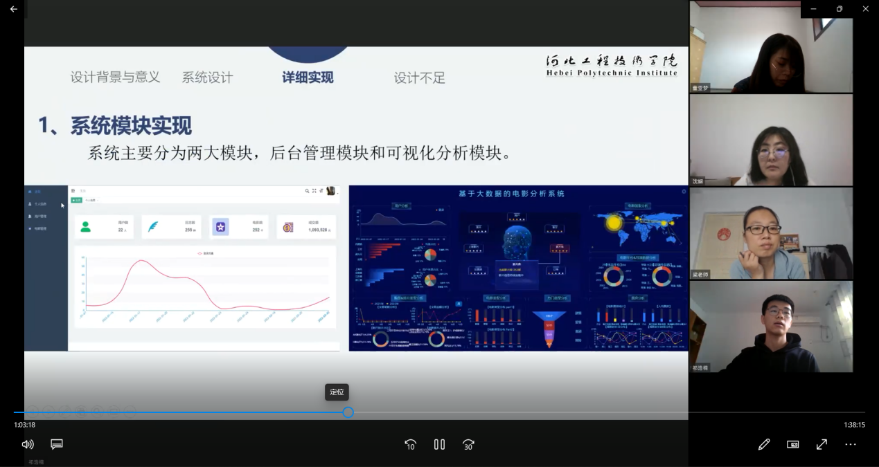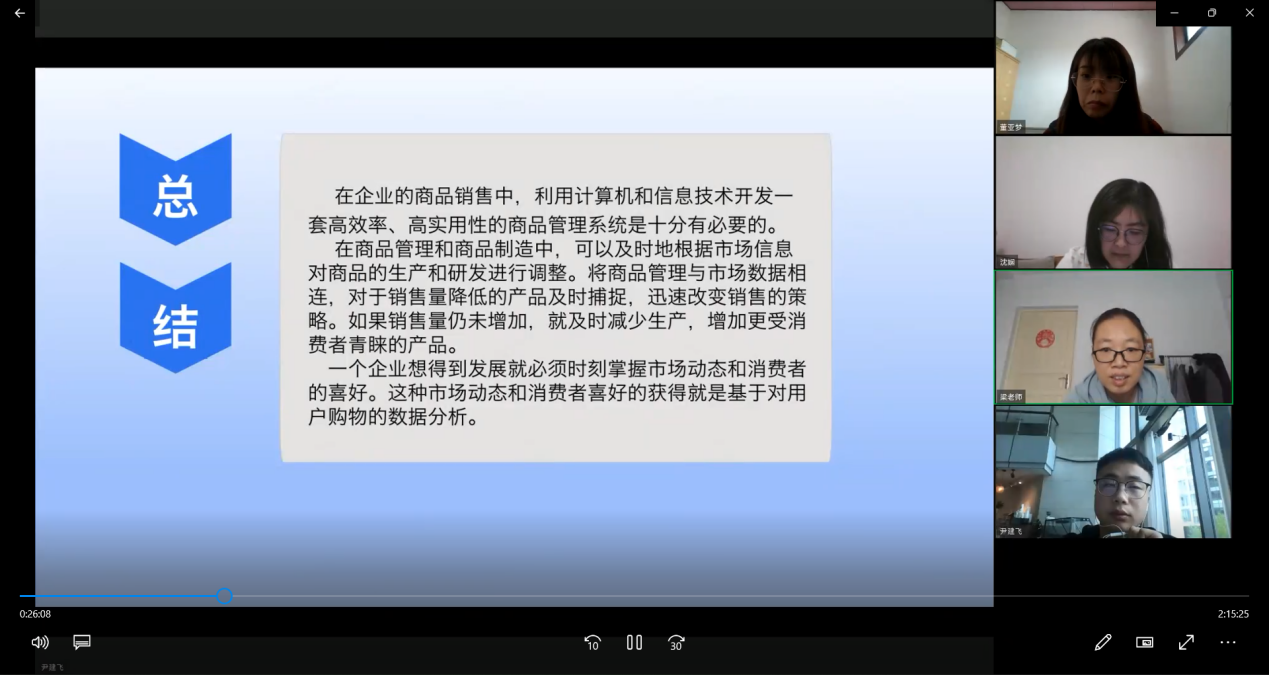 参加答辩的同学早已准备就绪,等待大学期间最后一场实战性的“考试”。他们在答辩前都经过了论文选题、中期检查、论文指导、论文审查等几个阶段精心的准备。此次毕业答辩分成12组,每组有10-12名同学,4-5名答辩评委老师。每个答辩小组有一位答辩小组组长统筹管理,一名答辩小组秘书收集学生毕业答辩相关材料和毕业答辩钉钉群的管理,其他答辩评委老师在答辩前查阅毕业论文和答辩中提出相关问题。此次毕业答辩采取线上钉钉会议模式,在答辩的前一天,各答辩小组秘书对参加答辩同学的设备进行测试,以保证毕业答辩顺利进行。毕业答辩主要分为两个环节。第一个环节是答辩陈述,答辩同学简单介绍设计思路和方案,详细介绍设计内容和完成的功能,简单介绍设计待解决的问题及改善。第二个环节是提问环节,答辩评委老师将根据毕业论文的内容提出相关问题,由答辩同学现场回答。在答辩过程中,学生们选题广泛,都阐述了自己的毕业设计的思路和内容。随后提问环节中,同学们回答简明准确,虽有不足,但都得到老师的认可,评委老师也提出了针对性的意见和要求。
