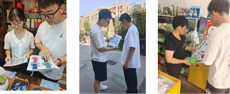 “夏日清朗队”团队通过入户走访和利用调查问卷的形式了解村民对于垃圾分类工作的认可度和执行力,引导村民积极参与到垃圾分类当中,共享环保低碳生活。团队成员沿街随机调研路人、住户和商家,了解其日常生活中的垃圾分类与处理情况。