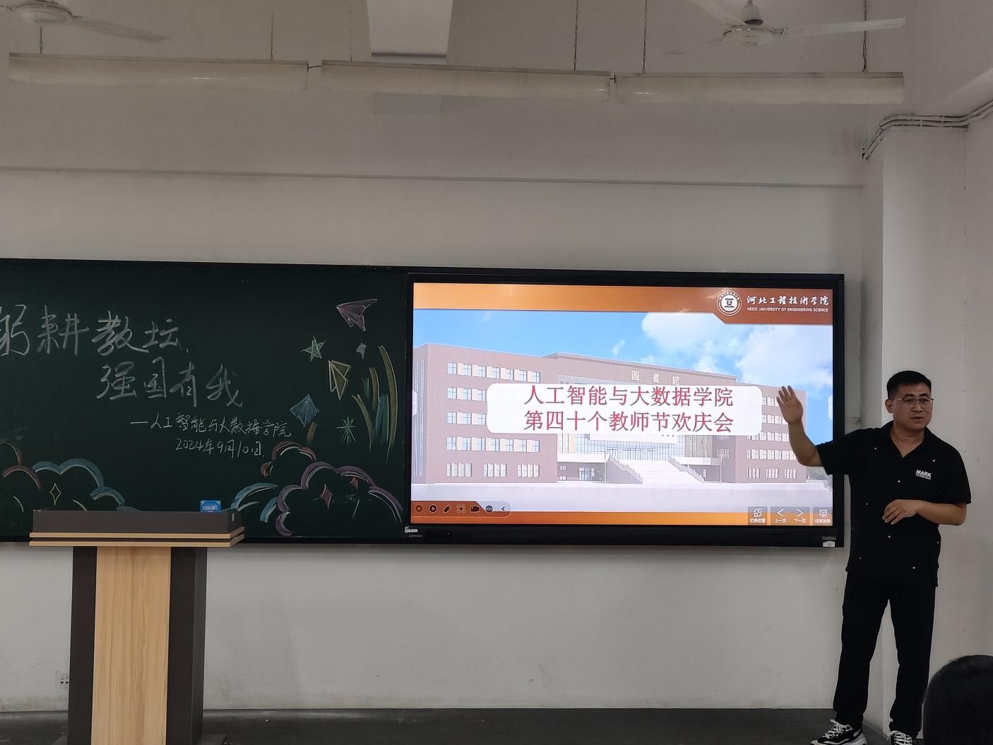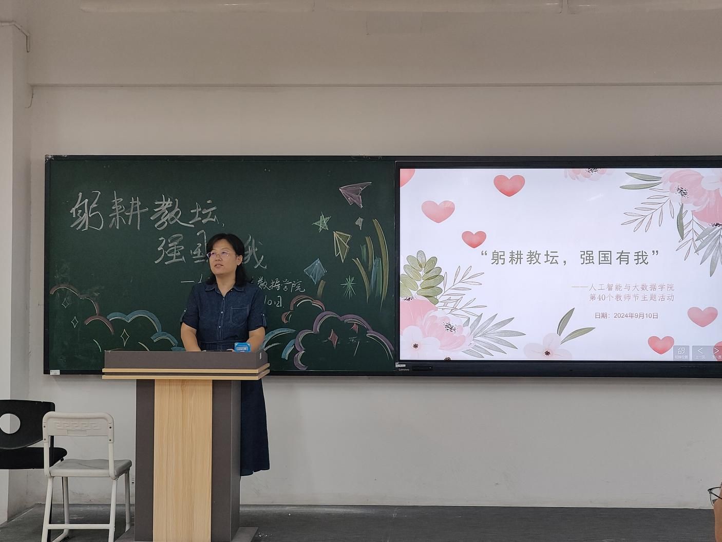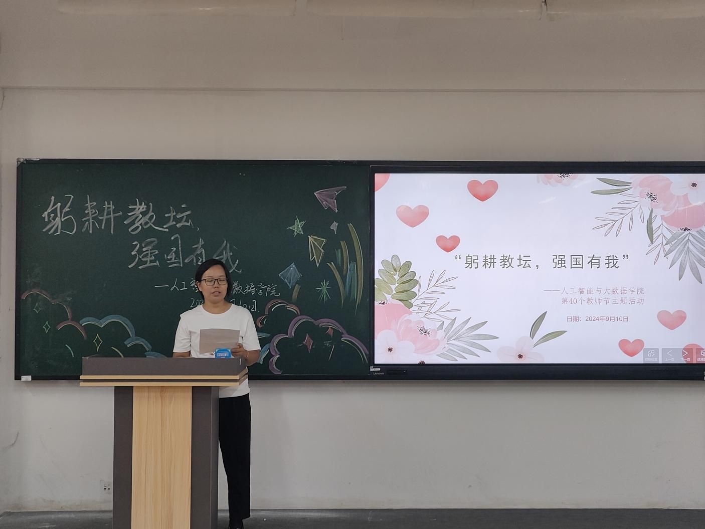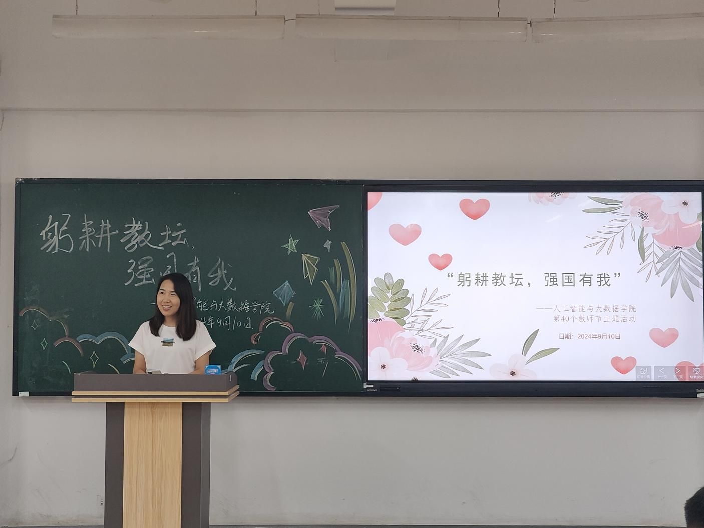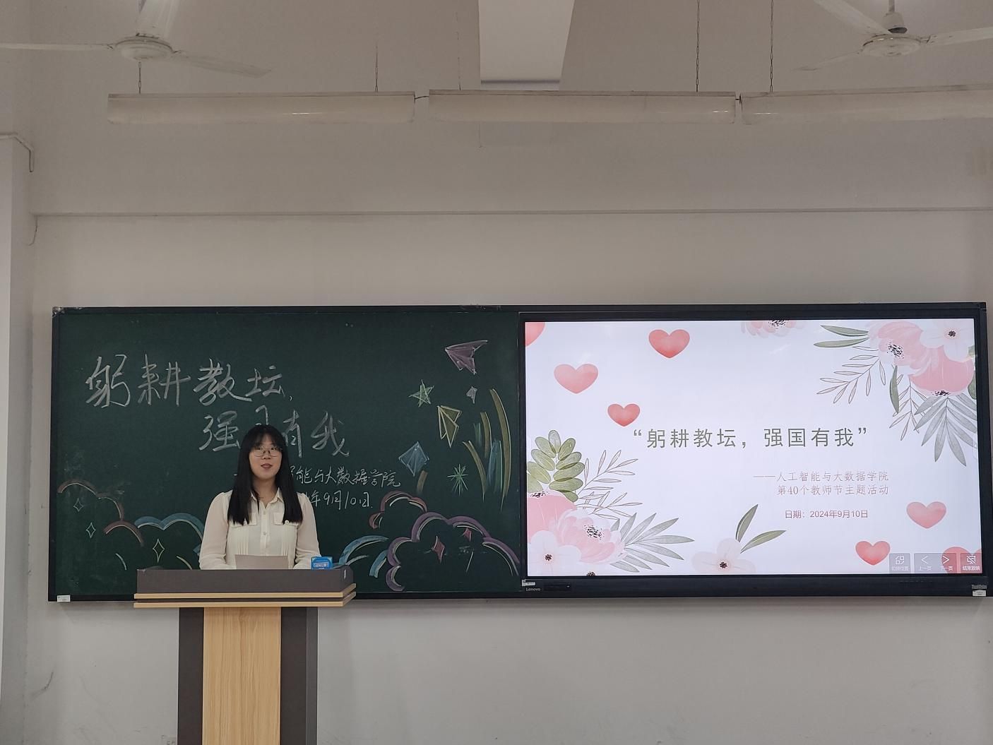 2024年9月10日,第40个教师节如约而至,人工智能与大数据学院于主教1-2举办了一场别开生面的教师节活动,我院全体教职工参与了此次活动。在温馨而庄重的氛围中,教师们共聚一堂,以“躬耕教坛,强国有我”为主题,庆祝属于他们的节日。