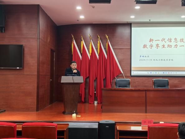 人工智能与大数据学院于2024年11月14日上午10点,在图书馆报告厅开展了周末专家行系列讲座——“新一代信息技术之数字孪生助力一带一路”。本次讲座特邀了中国天津理工大学教授,中国计算机学会杰出会员、理事,中国图象图形学学会杰出会员罗训教授作为主讲嘉宾,参与此次会议的有我院党总支书记、学管副院长尹钧,教学副院长林海霞,教学副院长孙劼,办公室主任田亚雷,虚拟现实技术系全体教师,部分专任教师,以及23、24级虚拟现实技术专业学生。