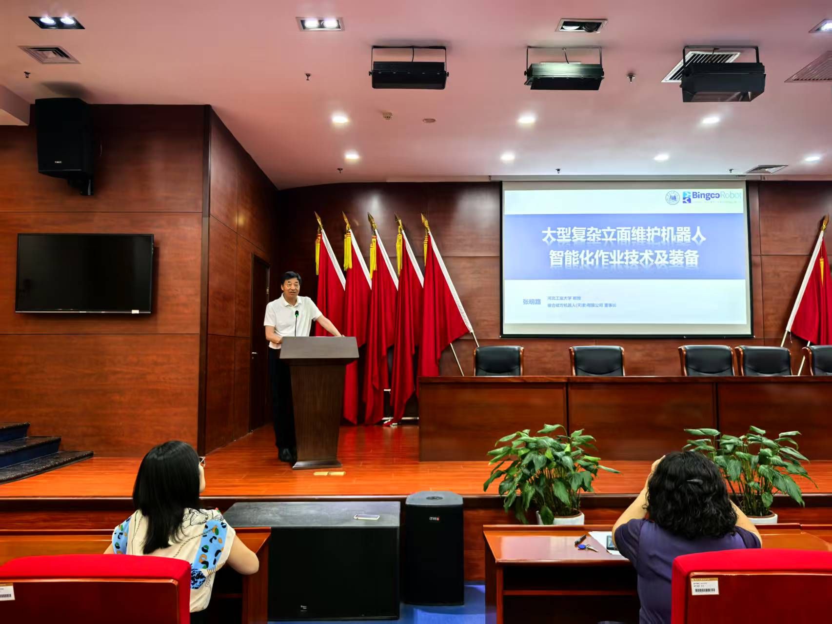 王静红院长在致辞中指出,随着高层建筑、大型桥梁等立面维护需求的增长,作业机器人技术为提升效率、保障安全提供了新思路。她希望本次讲座能够深化师生对相关技术的理解,为机器人技术的发展注入新活力。