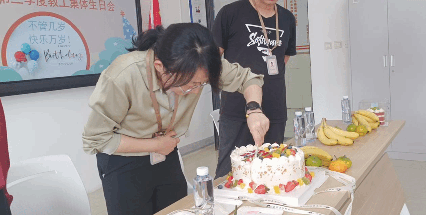 随后在《生日快乐》的歌声中,李主席和学院领导共同切开了象征祝福与甜蜜的生日蛋糕,将气氛推向了高潮。分工会还为每位老师准备了写有名字的“个性化”蛋糕,这份专属惊喜让老师们倍感温暖。