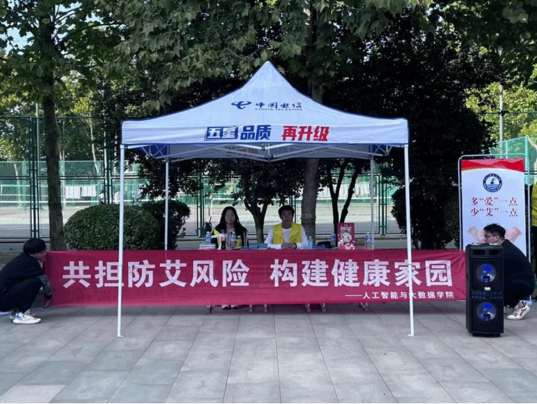 (1)人工智能与大数据学院学生会破除以往的宣传教育方式,以艾滋病相关知识进行竞答,获得套圈机会赢得小礼品的形式开展了“知艾防艾,青春无艾”主题活动。拉手,共防艾。心连心,传真爱。红丝带,系起来。通过此次活动,向在校学生传播了预防艾滋病知识,使学生们能够正确认识艾滋病,树立社会责任意识,营造了良好的艾滋病防治环境。