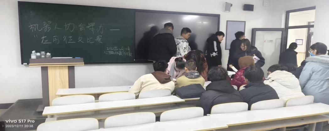 人工智能与大数据学院机器人协会于2023年12月11日晚八点举办“人工智能在机器人领域的应用征文比赛”活动,活动面向学院全体学生。