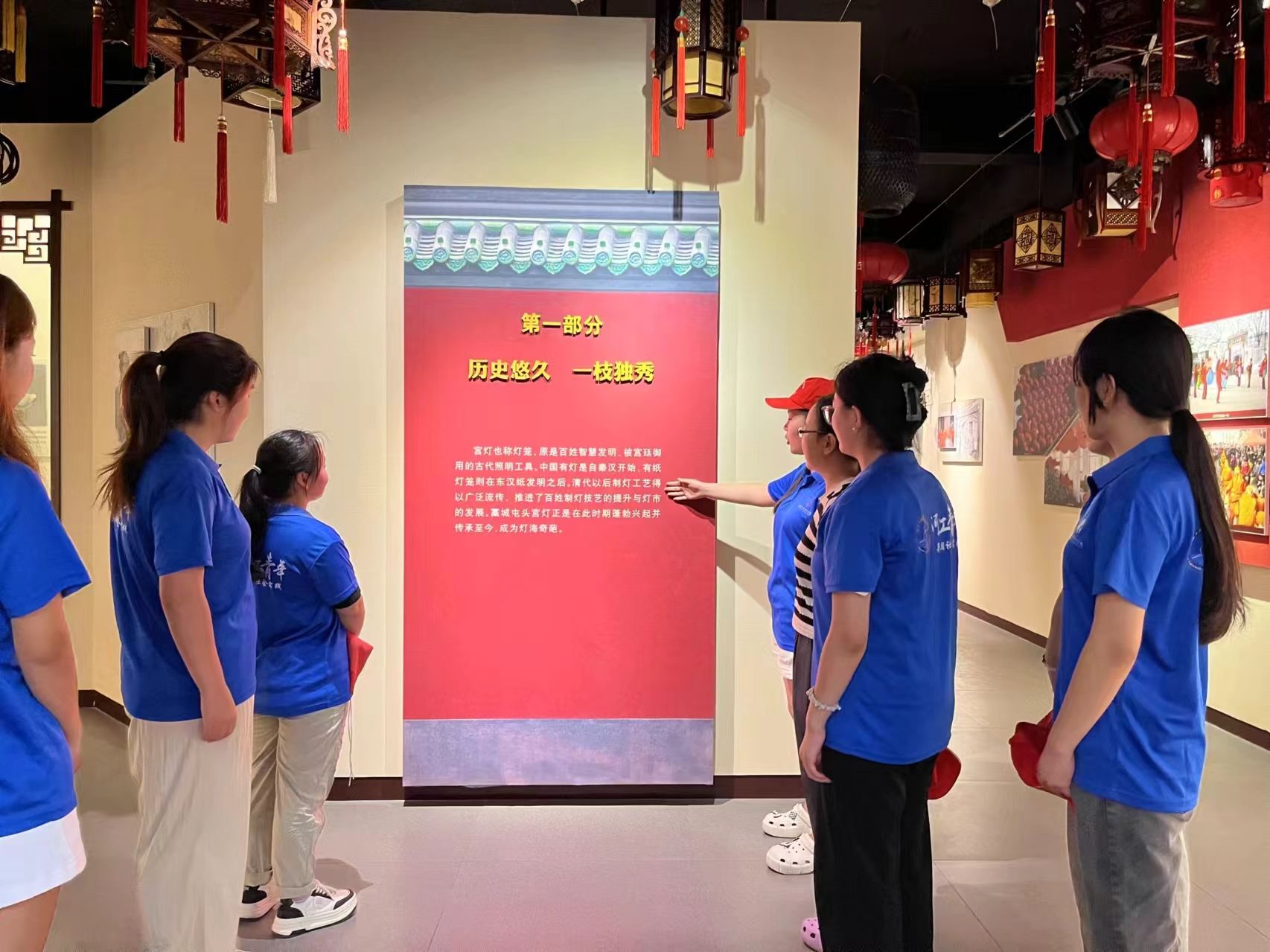 7月21日,乡村智慧“星”团队进入藁城屯头宫灯博物馆参观,在指导老师刘蕾与指导老师潘亚静的引领下了解到藁城宫灯博物馆具有悠久的历史和深厚的文化底蕴。博物馆内陈列着各式各样的宫灯,从汉、唐、宋、明、清各个时期的宫灯到现代创新产品,应有尽有,为我们提供了一个全面了解宫灯发展史的窗口。