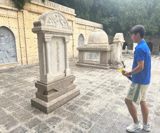 赤遗探索团在烈士墓区内庄严献花,缅怀先烈