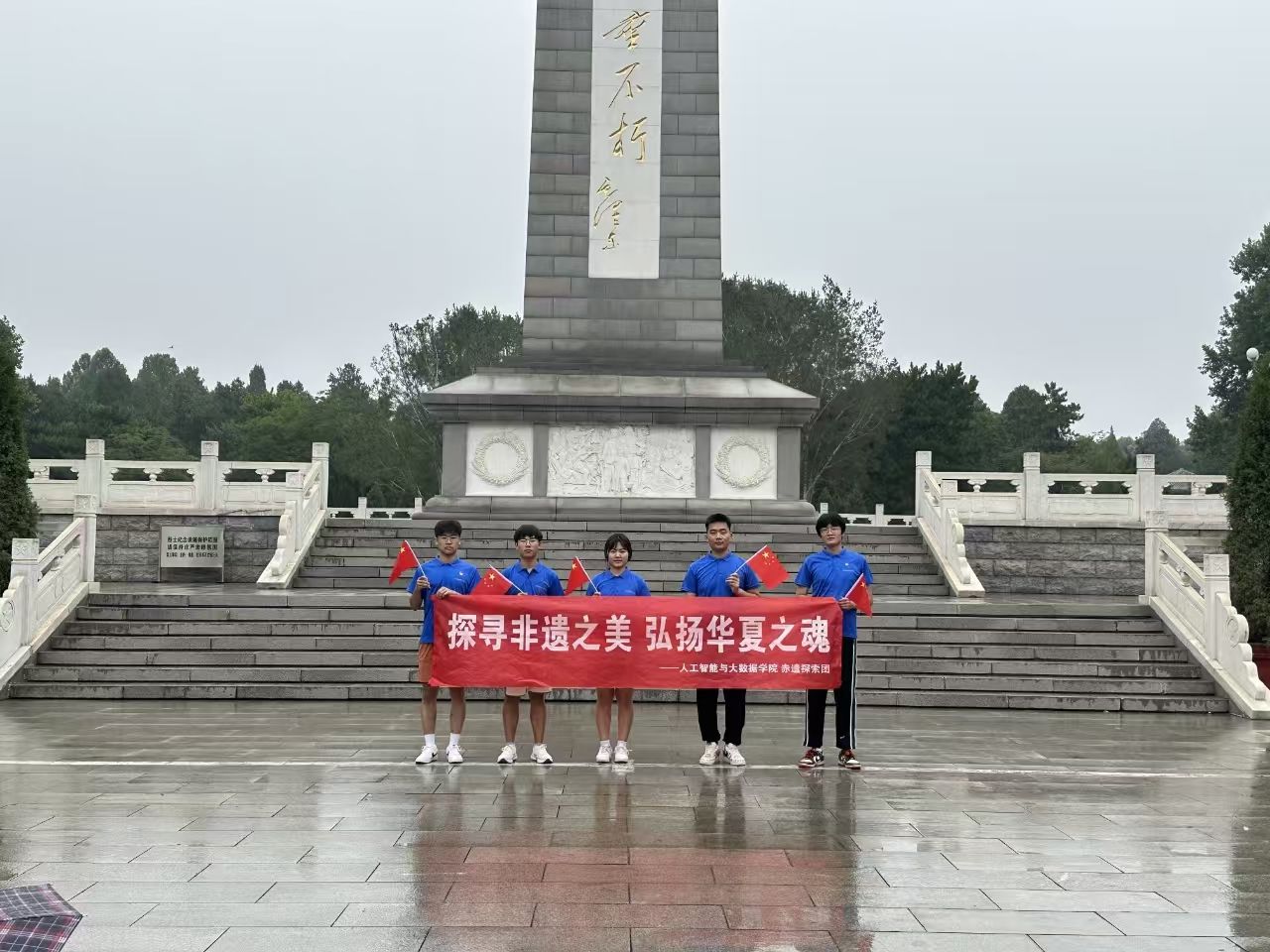 赤遗探索团在烈士陵园纪念碑前合照