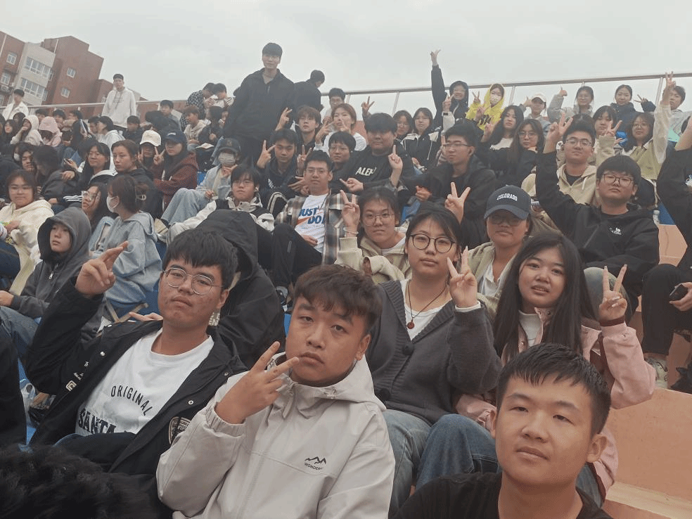 天空飘着细雨,宛如大自然为这场盛会调制的独特调料,虽带来些许湿润,却无法阻挡师生们如火的热情。细雨似在为这场狂欢奏响别样旋律,而心中的激情火焰越烧越旺。