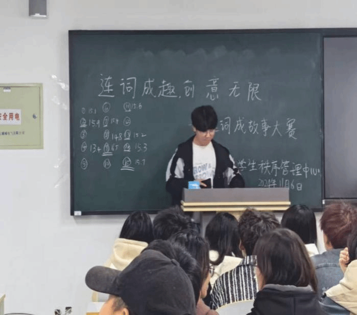 人工智能与大数据学院大学生秩序管理中心于2024年11月6日于主教1-1举办了“连词成趣,创意无限——连词成故事大赛”活动。