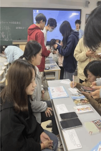 活动当天,工作人员提前到达活动教室,紧张而有序地准备多样的明信片和希望树画布。摊位前,工作人员热情洋溢地宣传着活动的意义和内容,在他们的邀请下,不少学生被吸引过来,纷纷加入到这场爱心传递的行列中。