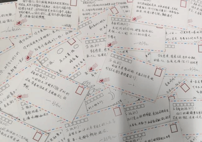 学生们为留守儿童书写祝福明信片