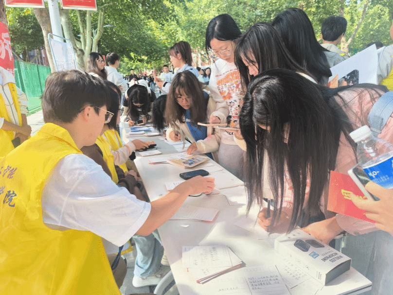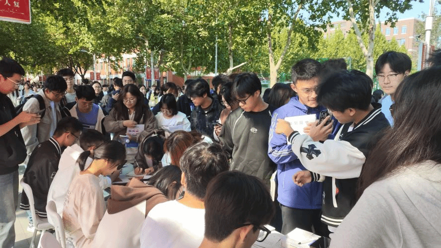 随着活动的正式开始,师生们纷纷来到摊位前,领取属于自己的明信片。这一刻,时间仿佛静止,喧嚣的世界被隔绝在外。他们拿起笔,就像打开了与祖国对话的大门,让思绪在笔尖流淌。
