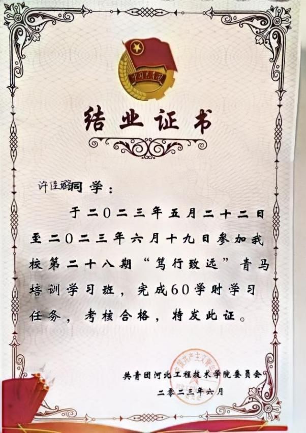 2023年“笃行致远”青马培训荣获学习班结业证书。