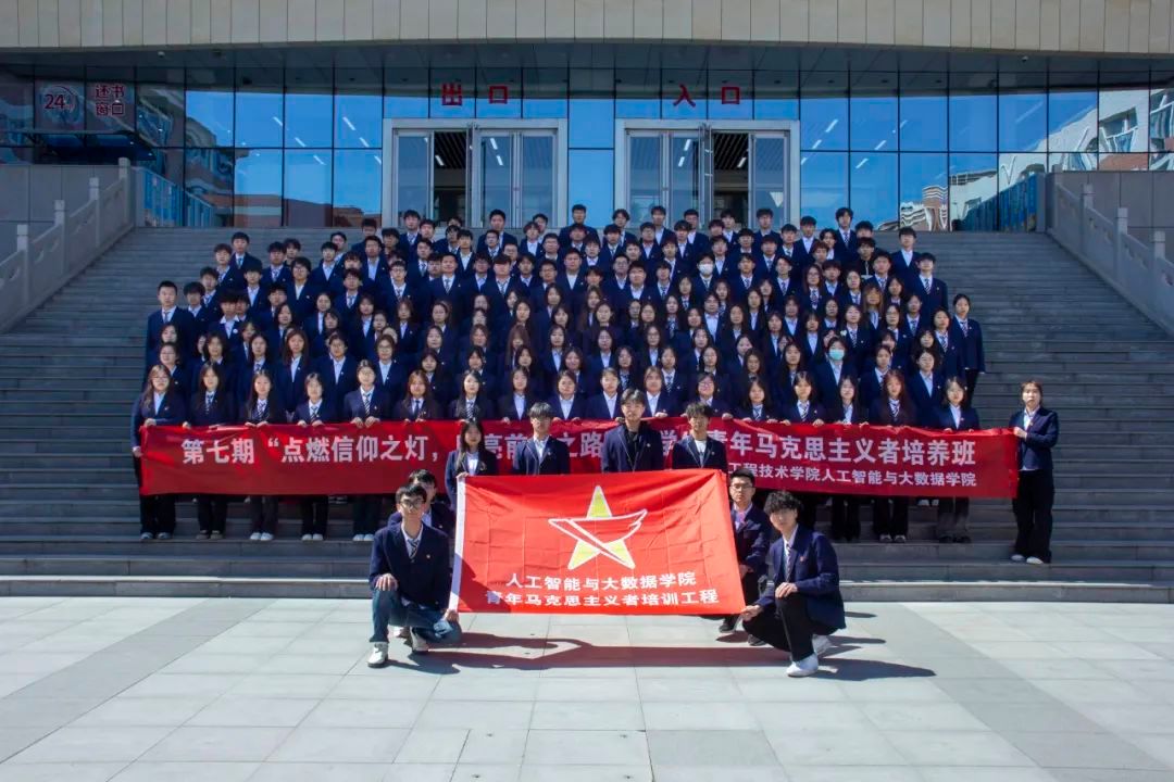 随着于仰昊的发言结束,人工智能与大数据学院第七期“点亮信仰之灯,照亮前行之路”青年马克思主义者培训班的开班仪式落下帷幕。最后全体人员移至图书馆前合影拍照留念。