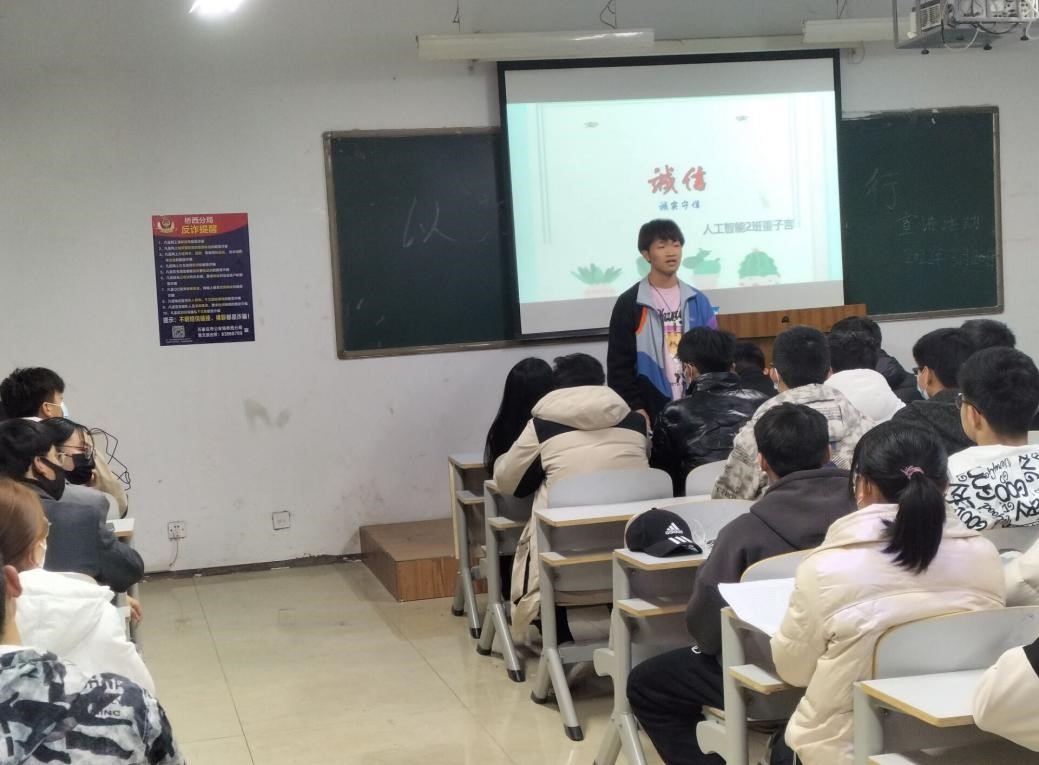 3月20日,人工智能与大数据学院团总支举办“以诚立身,以信笃行”主题宣讲活动。诚为立身之本,信乃道德之基。使学生继承中华民族诚信的优秀品格,弘扬学院诚信之风。