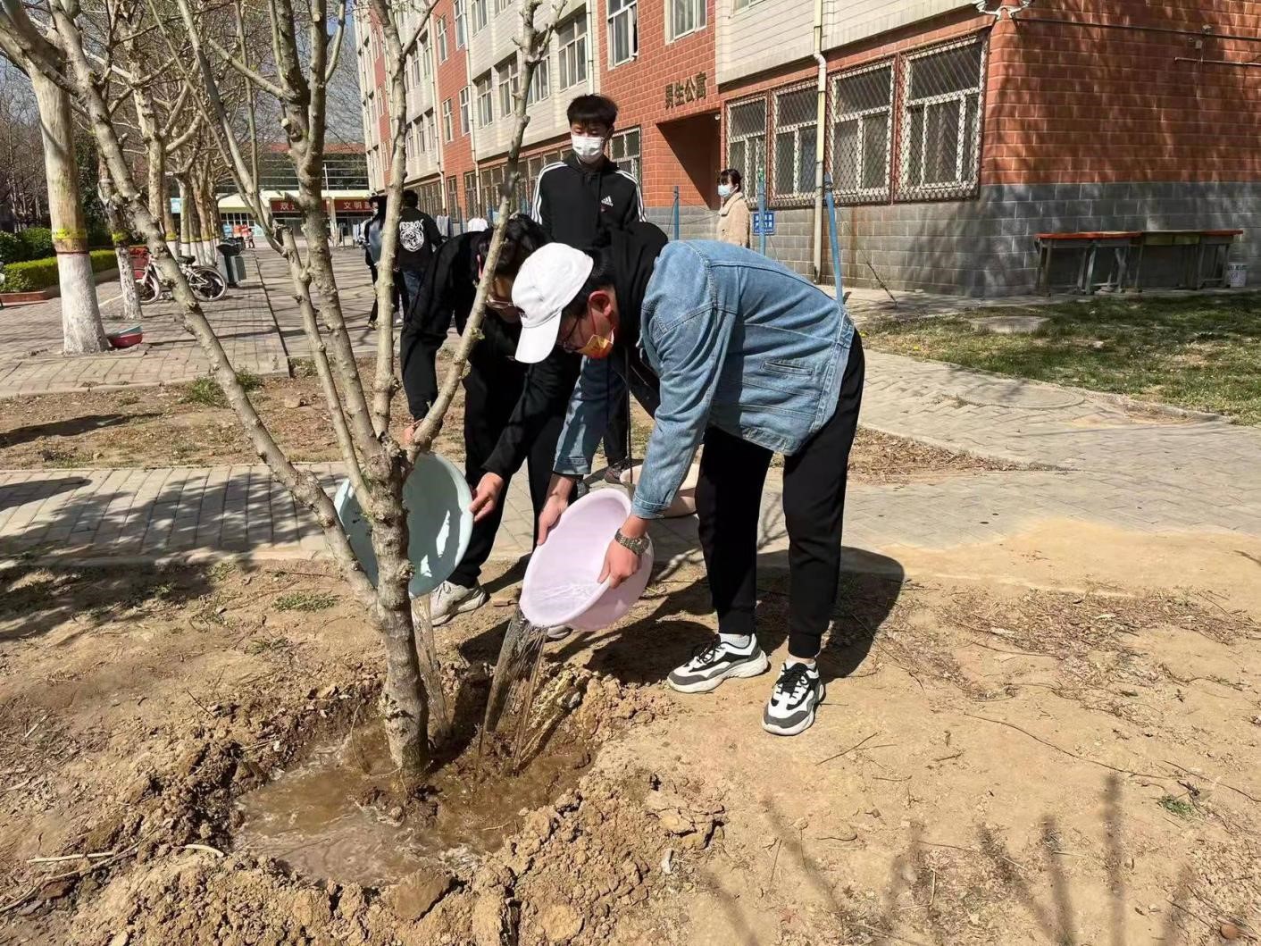 为了贯彻“用行动去传播”的环保理念,激发学生们爱木造林的感情,促进校园绿化,保护生态环境,人工智能与大数据学院于2022年4月3日上午10:00,在三号宿舍楼东侧组织“春暖花开学生党员志愿浇树活动”,本次活动由人工智能与大数据学院党总支书记兼学管副院长尹钧带领,团总支书记苗璋寒、辅导员代表刘晓玲老师、王凤老师及全体学生党员参与。