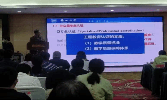 随后,燕山大学金淼教授作《工程教育专业认证背景下的专业建设探讨》报告。他作为主要负责人对工程教育专业认证体系、理念及专业建设要点有较为深入的认识。他指出“专业认证”的根本是教学质量及保障体系,是课程建设的关键。专业必须有明确、公开、可衡量的毕业要求,毕业要求应能支撑培养目标的达成等建设性意见报告。