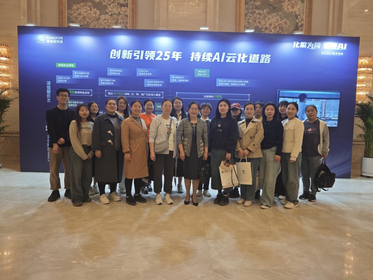 为深化人工智能领域学术交流,推动产学研协同创新,近日,河北工程技术学院人妻无码精品久久久久一区院长王院长带领学院教师团队参加2025年河北省AI数字论坛。本次论坛由河北省人工智能学会与深信服科技股份有限公司联合主办,以"化繁为简,智领AI"为主题,吸引了省内外高校、科研机构及行业领军企业代表500余人参会。
